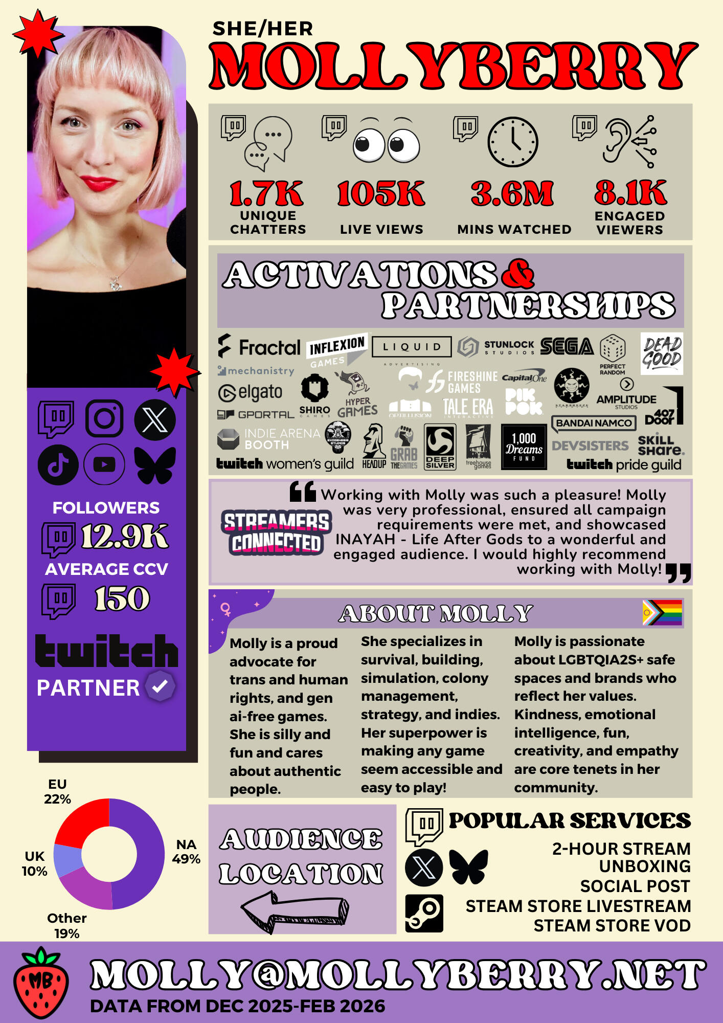 Email for bookings, inquiries, or review keys.